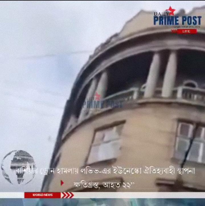 রাশিয়ার ড্রোন হামলায় লভিভ-এর ইউনেস্কো ঐতিহ্যবাহী স্থাপনা ক্ষতিগ্রস্ত, আহত ২২। – Russian drone strike damages UNESCO heritage site in Lviv, injures 22.