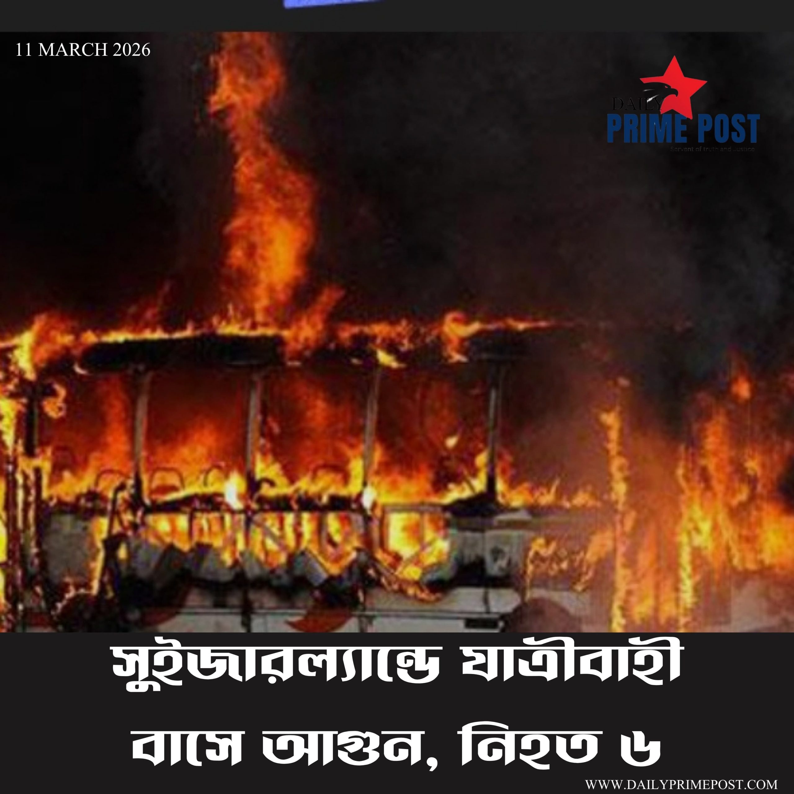 সুইজারল্যান্ডে যাত্রীবাহী বাসে আগুন, নিহত ৬। – Six killed in bus fire in Switzerland.
