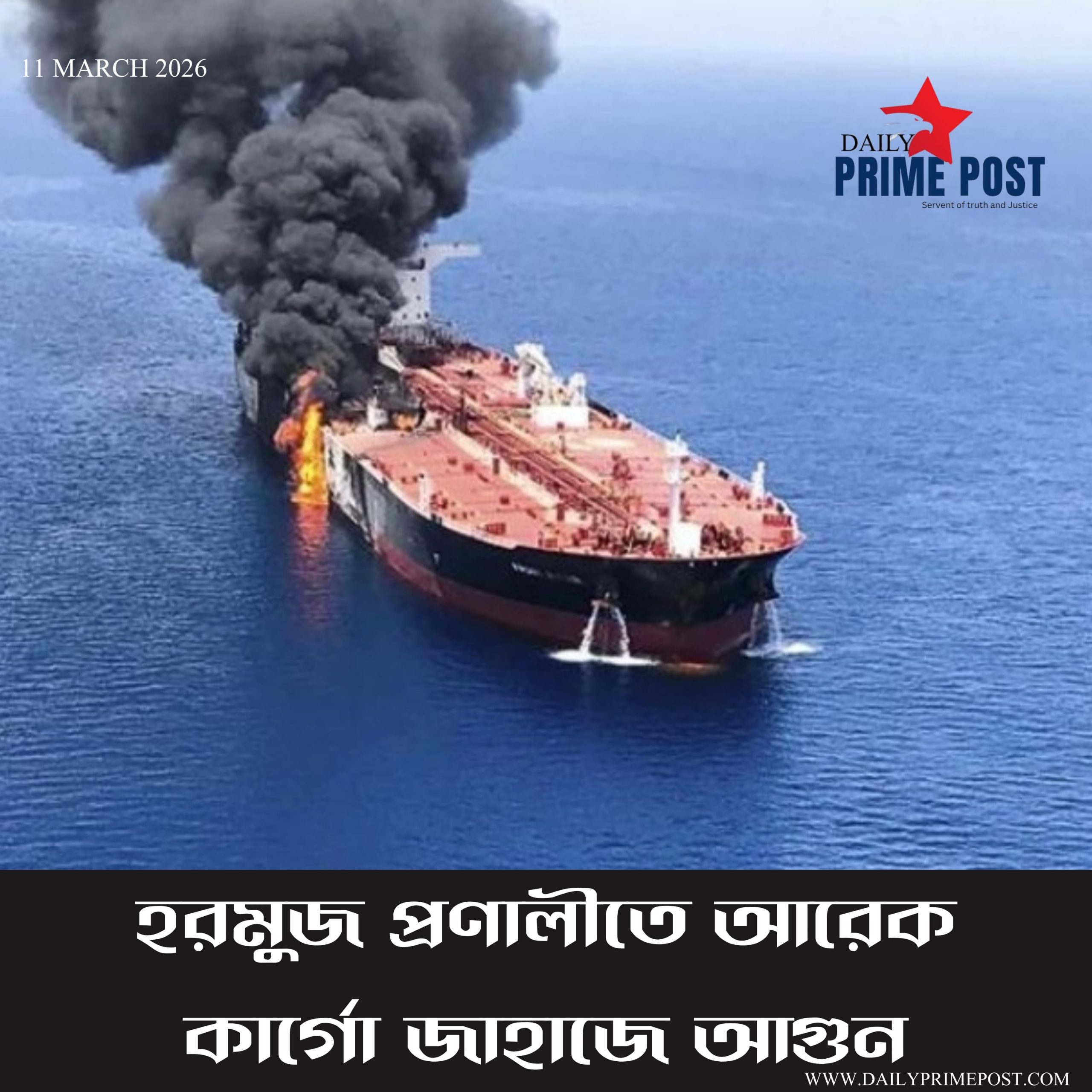 হরমুজ প্রণালীতে তেলবাহী ট্যাংকারে হামলা। – Oil tanker attacked in the Strait of Hormuz.