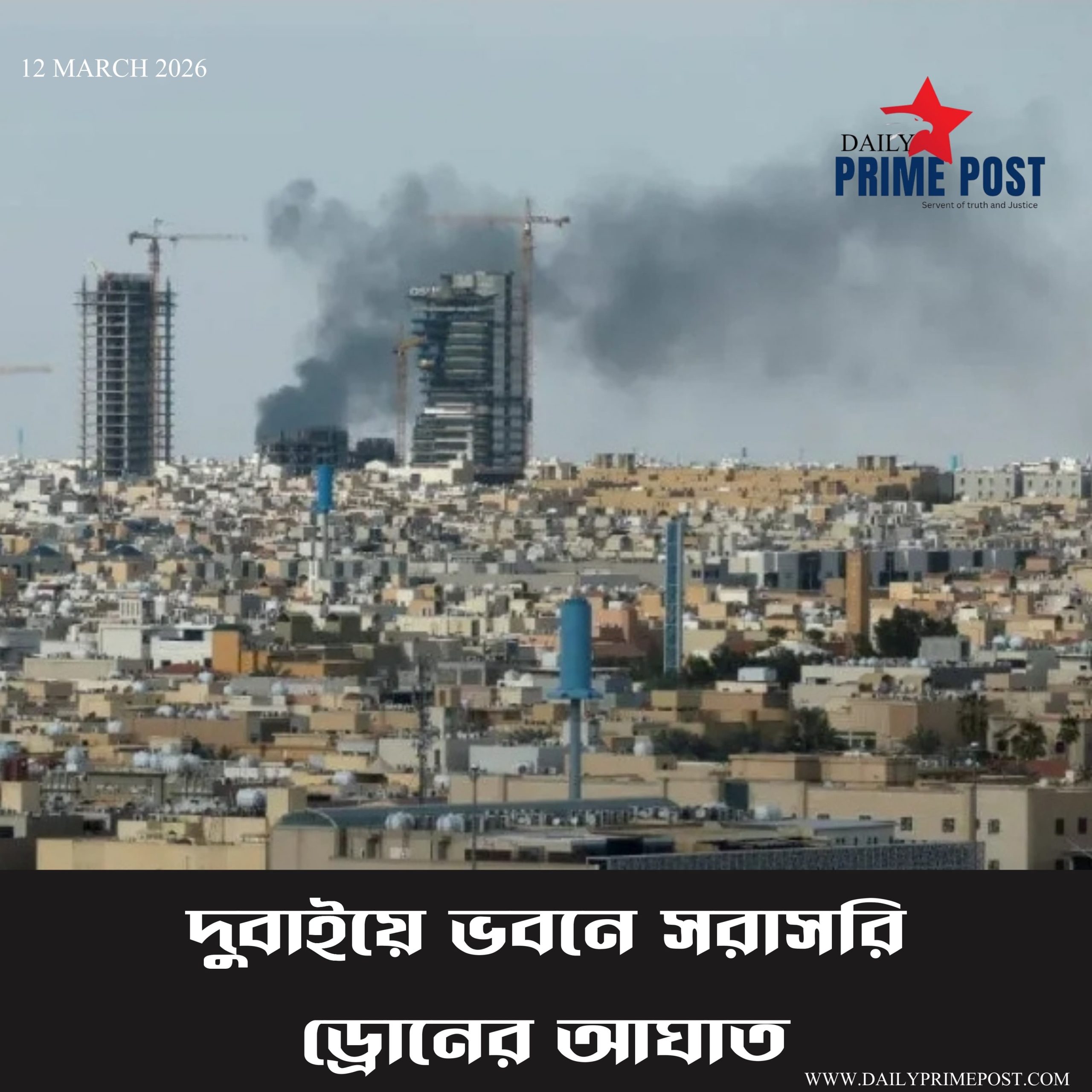 দুবাইয়ে ভবনে সরাসরি ড্রোনের আঘাত। – Drone hits building in Dubai.