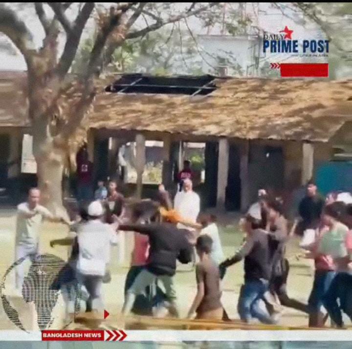 শেরপুর থানার বালুঘাট কেন্দ্রে মারামারি। – Fight breaks out at Balughat police station in Sherpur