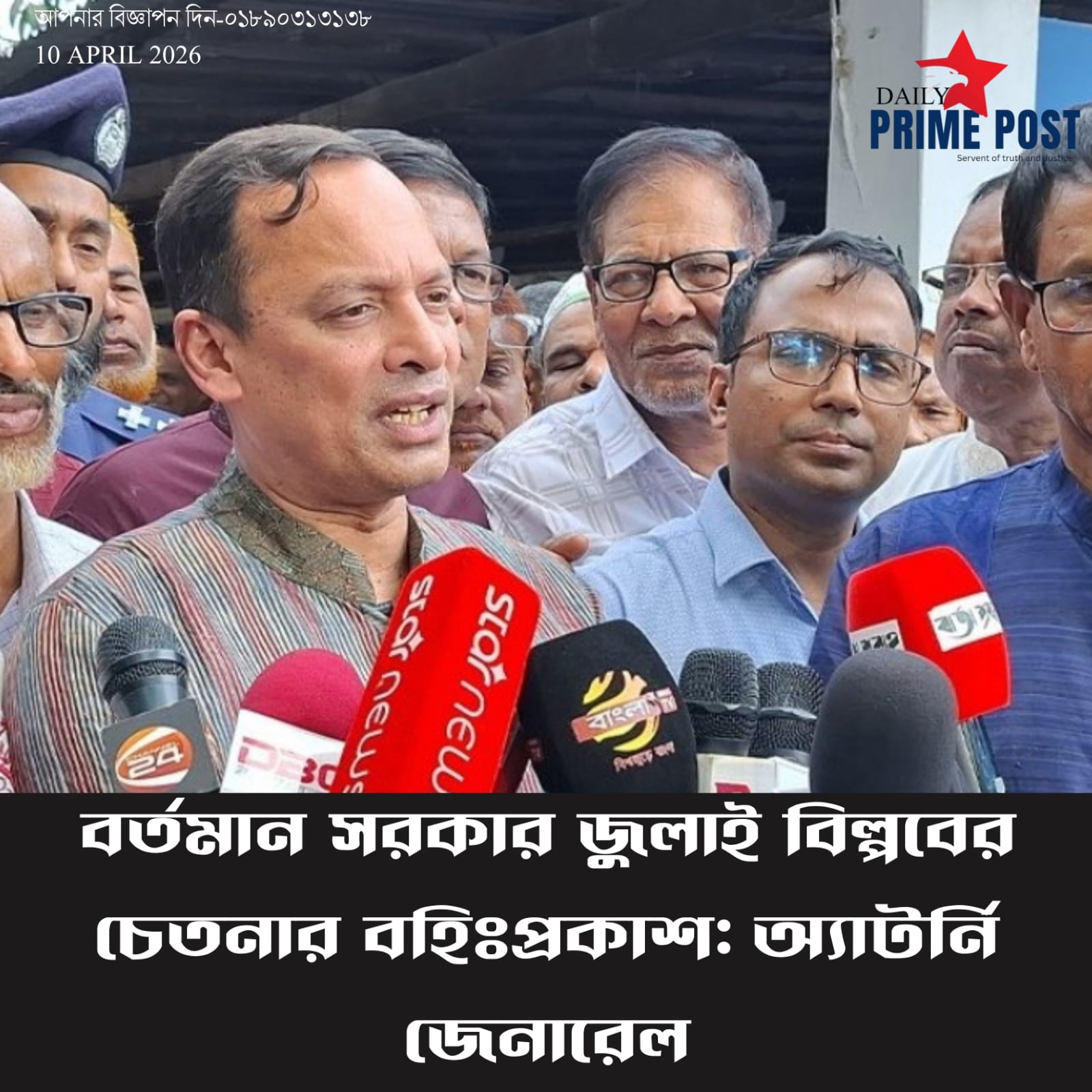 বর্তমান সরকার জুলাই বিপ্লবের চেতনার বহিঃপ্রকাশ: অ্যাটর্নি জেনারেল। – Current government is a manifestation of the spirit of the July Revolution: Attorney General.