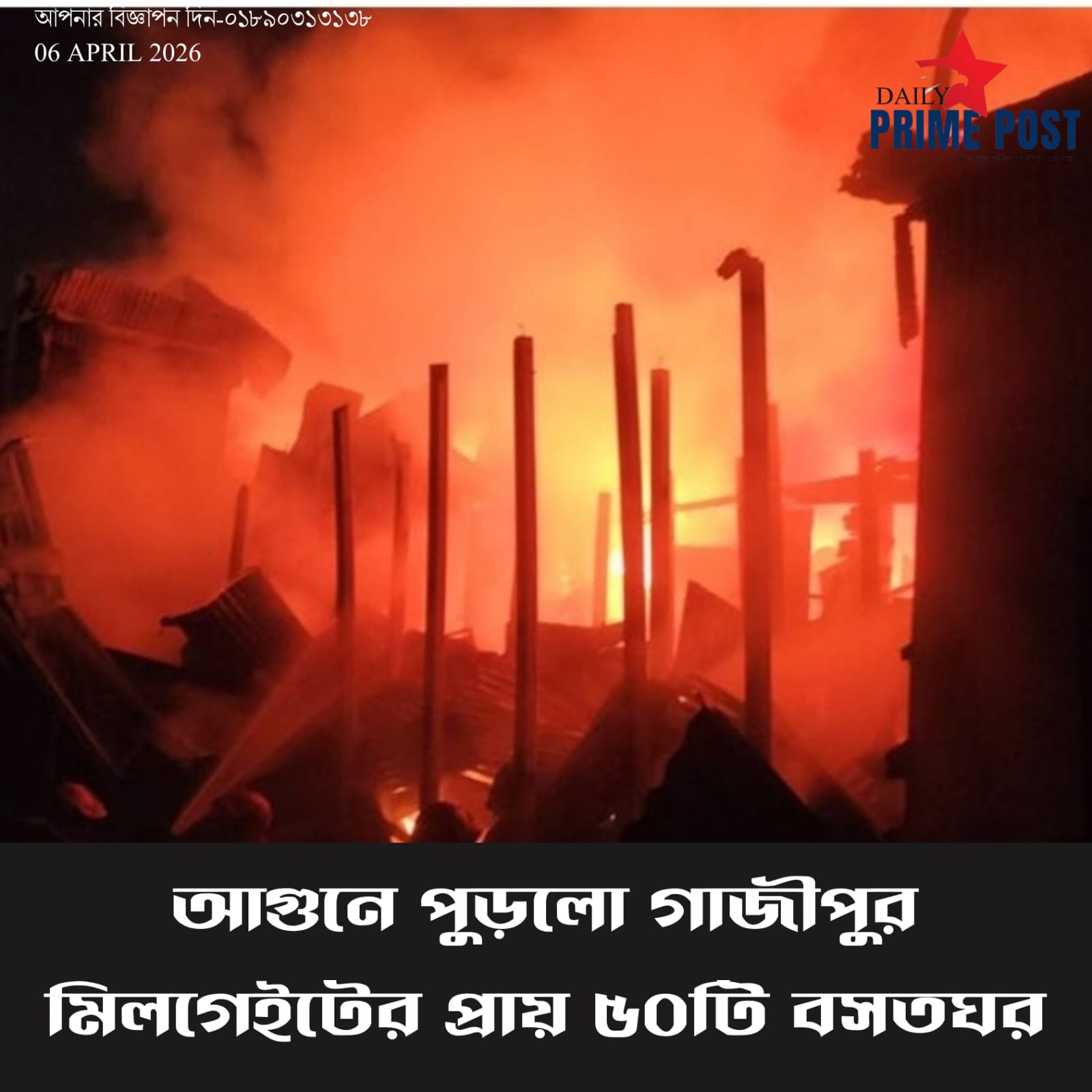 আগুনে পুড়লো গাজীপুর মিলগেইটের প্রায় ৫০টি বসতঘর। – Nearly 50 homes in Gazipur’s Millgate burned down in fire.