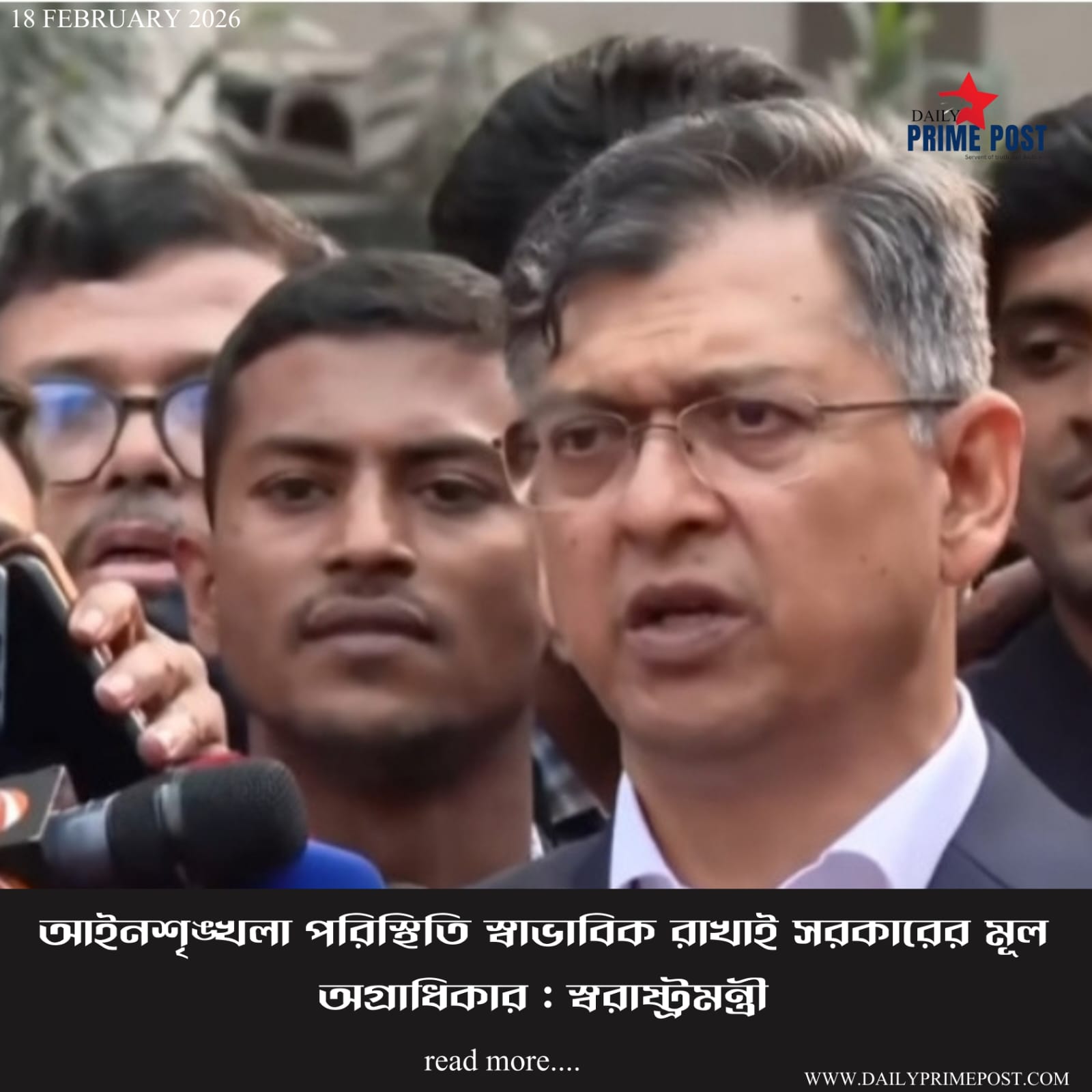 আইনশৃঙ্খলা পরিস্থিতি স্বাভাবিক রাখাই সরকারের মূল অগ্রাধিকার : স্বরাষ্ট্রমন্ত্রী। – Maintaining law and order situation is government’s main priority: Home Minister.