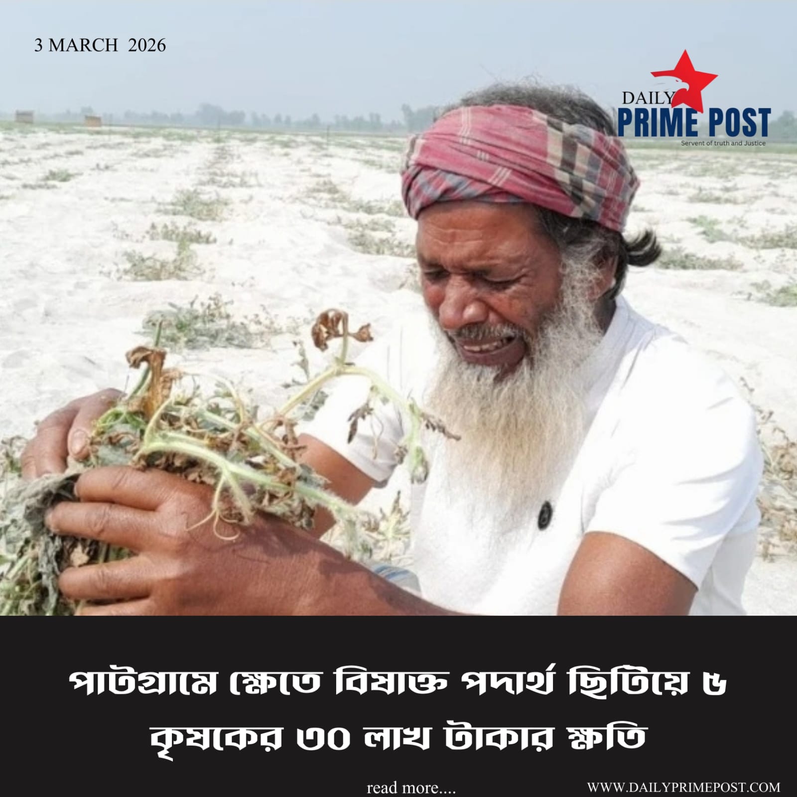পাটগ্রামে ক্ষেতে বিষাক্ত পদার্থ ছিটিয়ে ৫ কৃষকের ৩০ লাখ টাকার ক্ষতি। – 5 farmers suffer Tk 3 million loss after spraying toxic substances in fields in Patgram.
