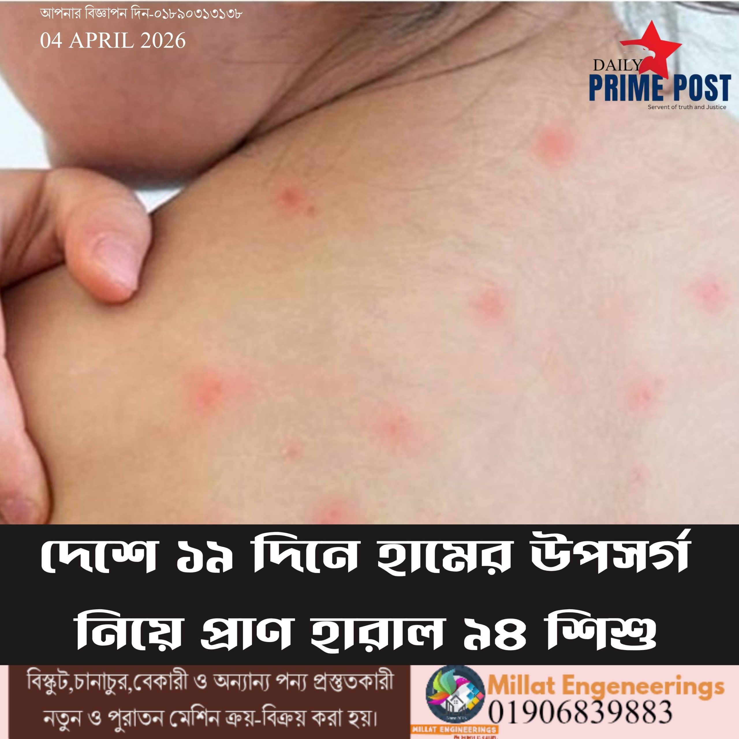 হামের প্রকোপে দেশজুড়ে বাড়ছে আতঙ্ক-উদ্বেগ আর মৃত্যু। স্বাস্থ্য অধিদফতর জানিয়েছে, গত ১৯ দিনে হামের উপসর্গ নিয়ে ৯৪ জন মারা গেছে। ReadMore..
