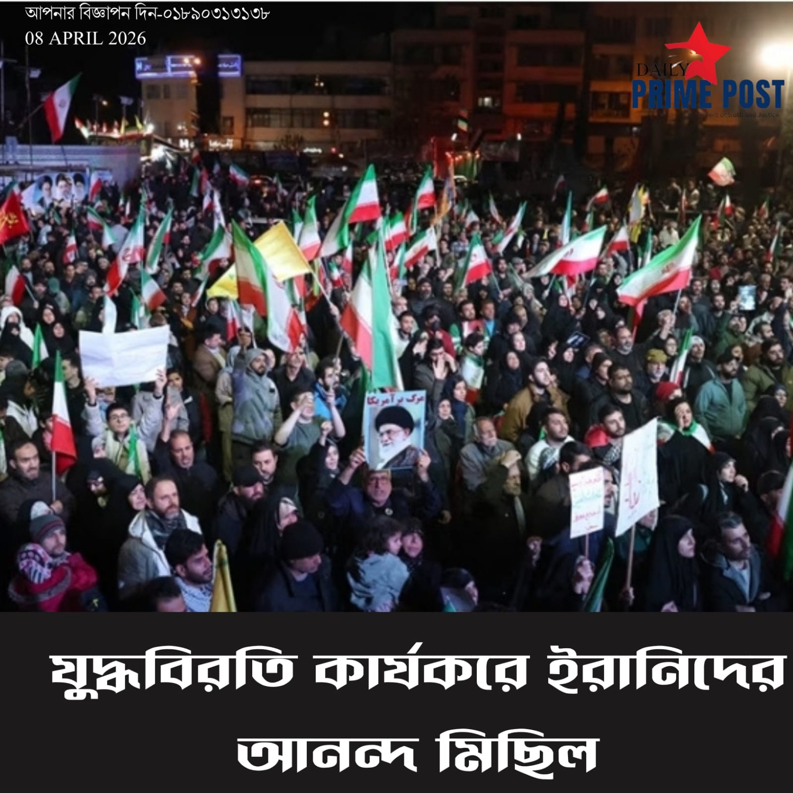 যুদ্ধবিরতি কার্যকরের পরেই আনন্দ মিছিল করেছে ইরানিরা। খবর শুনেই রাজধানী তেহরানের ইনকিলাব স্কয়ারে জড়ো হন শত শত নাগরিক। নারী-পুরষ শিশুসহ