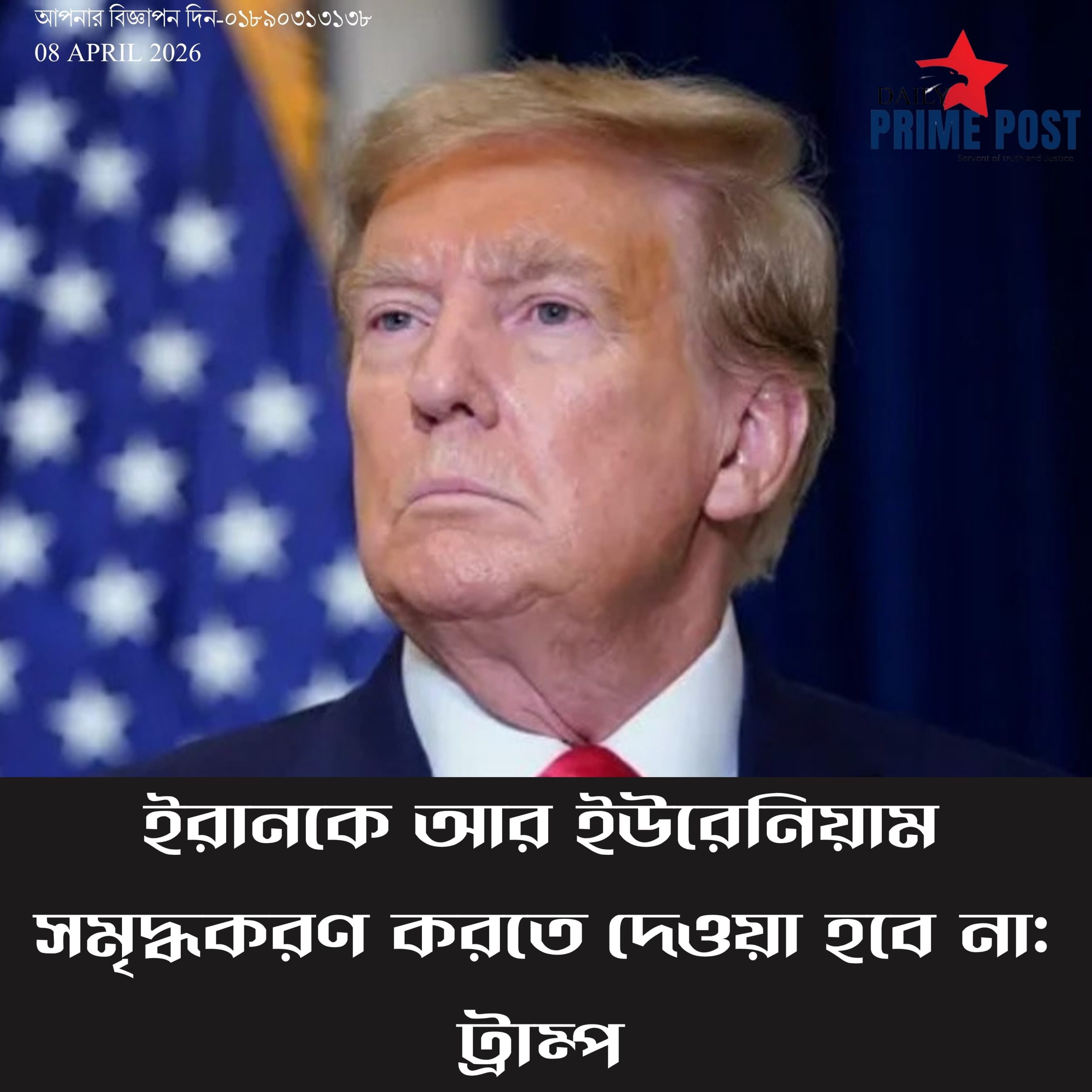 ইরানকে আর ইউরেনিয়াম সমৃদ্ধকরণ করতে দেওয়া হবে না: ট্রাম্প। – Iran will no longer be allowed to enrich uranium: Trump.