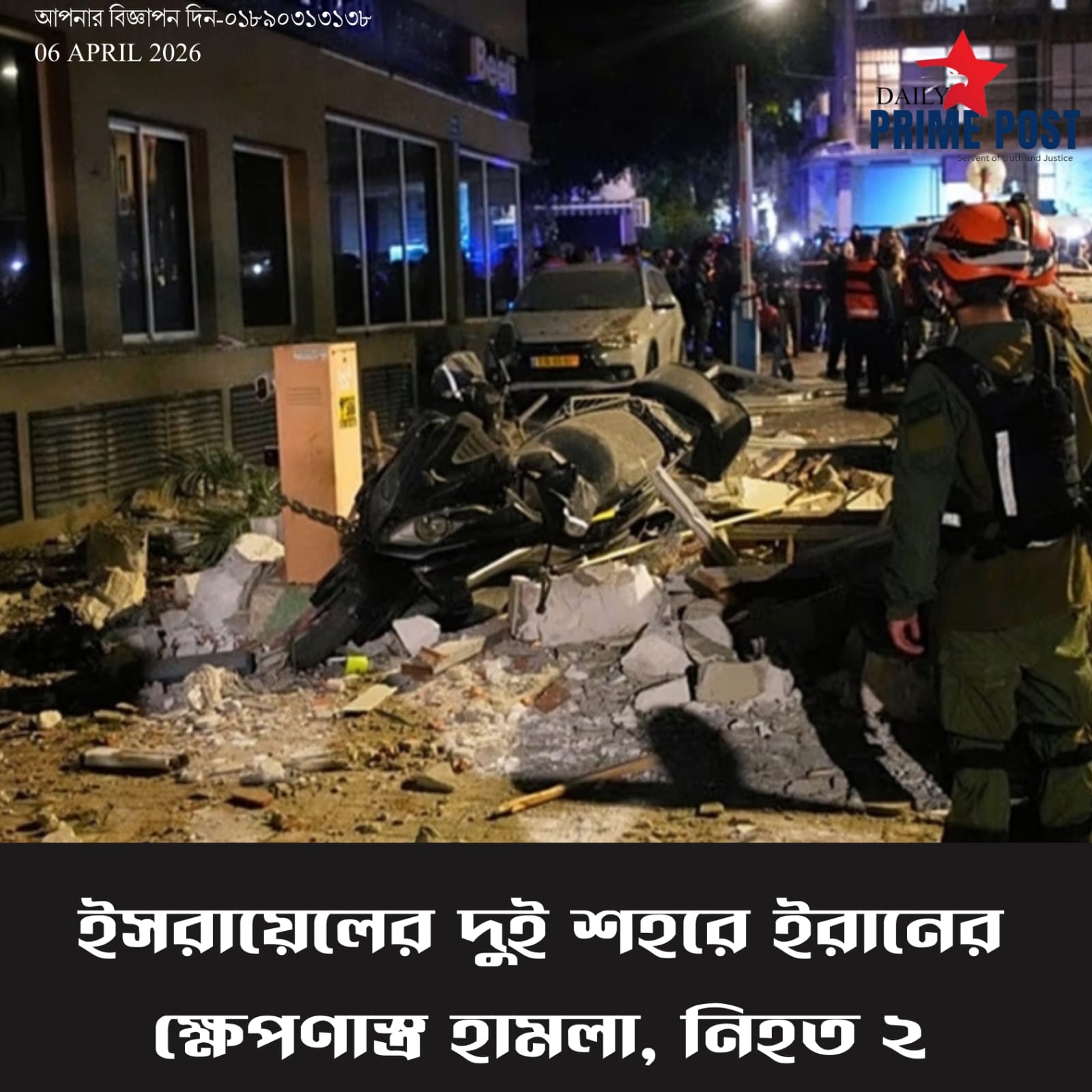 ইসরায়েলের দুই শহরে ইরানের ক্ষেপণাস্ত্র হামলা, নিহত ২। – Iran missile attacks two Israeli cities, 2 killed.