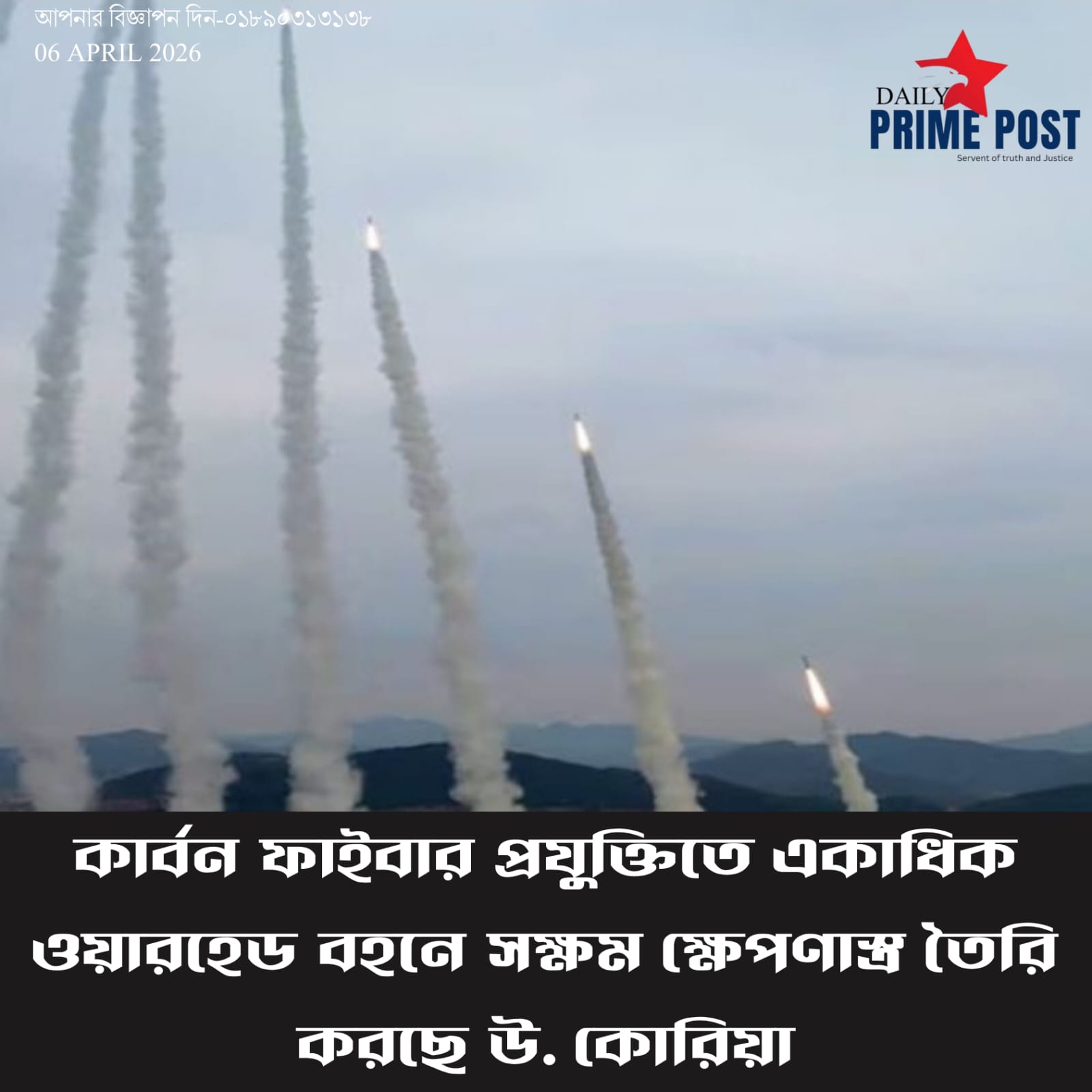 কার্বন ফাইবার প্রযুক্তিতে একাধিক ওয়ারহেড বহনে সক্ষম ক্ষেপণাস্ত্র তৈরি করছে উ. কোরিয়া। – North Korea is developing missiles capable of carrying multiple warheads using carbon fiber technology.