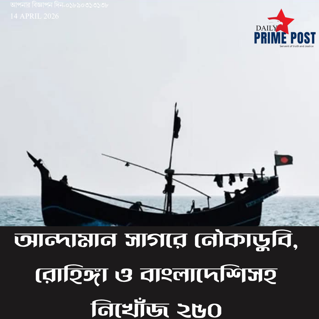 আন্দামান সাগরে নৌকাডুবি, রোহিঙ্গা ও বাংলাদেশিসহ নিখোঁজ ২৫০।Boat capsizes in Andaman Sea, 250 missing, including Rohingya and Bangladeshis