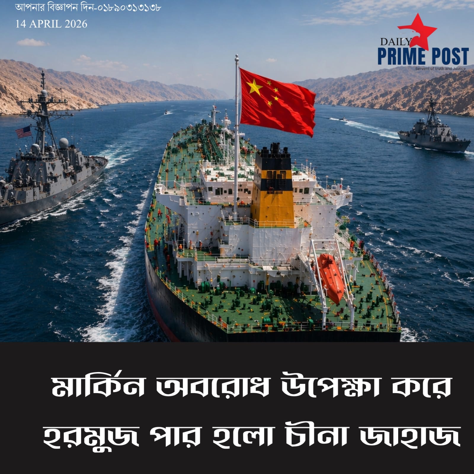 মার্কিন অবরোধ উপেক্ষা করে হরমুজ পার হলো চীনা জাহাজ। – Chinese ship passes through Hormuz, ignoring US blockade.