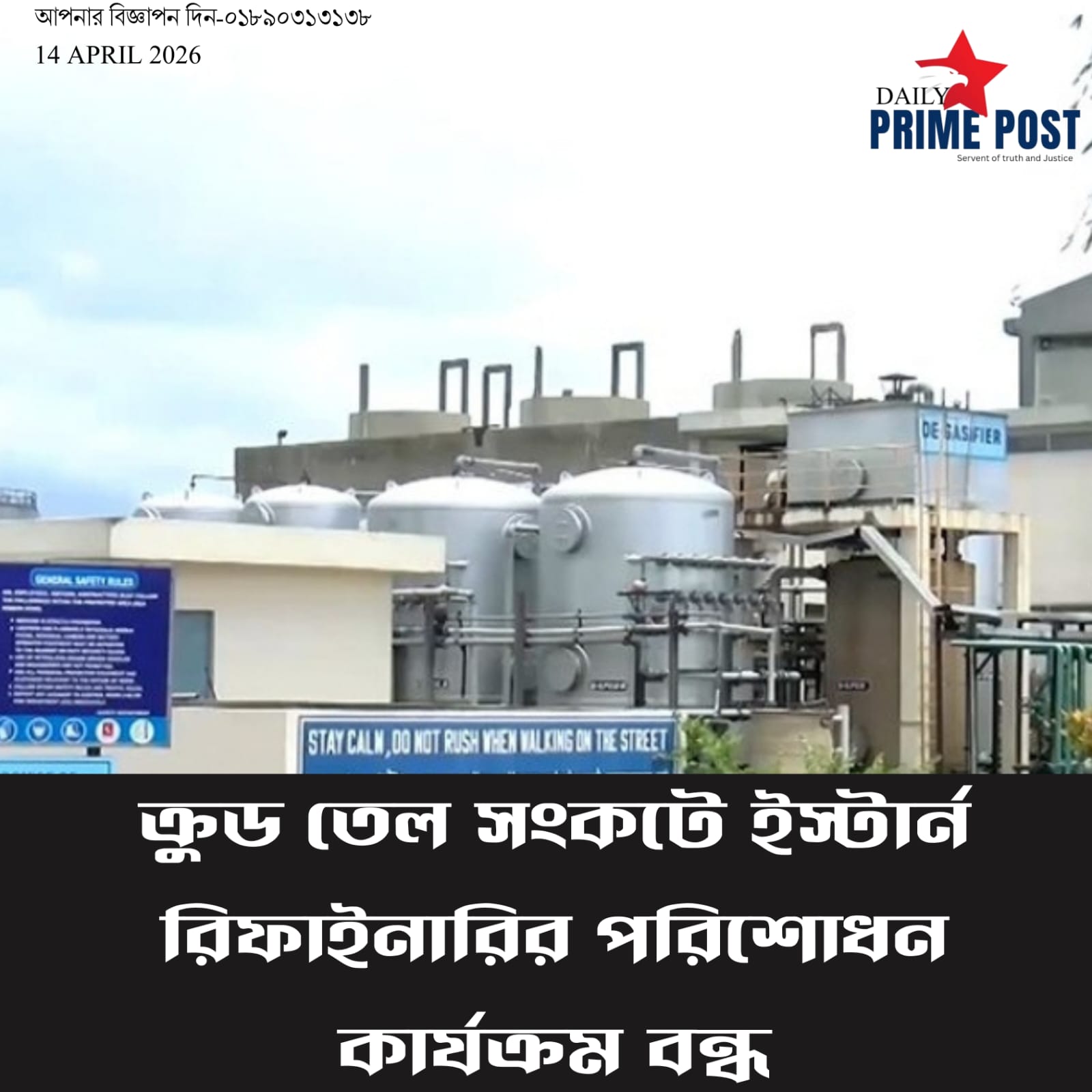 ক্রুড তেল সংকটে ইস্টার্ন রিফাইনারির পরিশোধন কার্যক্রম বন্ধ। – Eastern Refinery’s refining operations halted due to crude oil crisis.