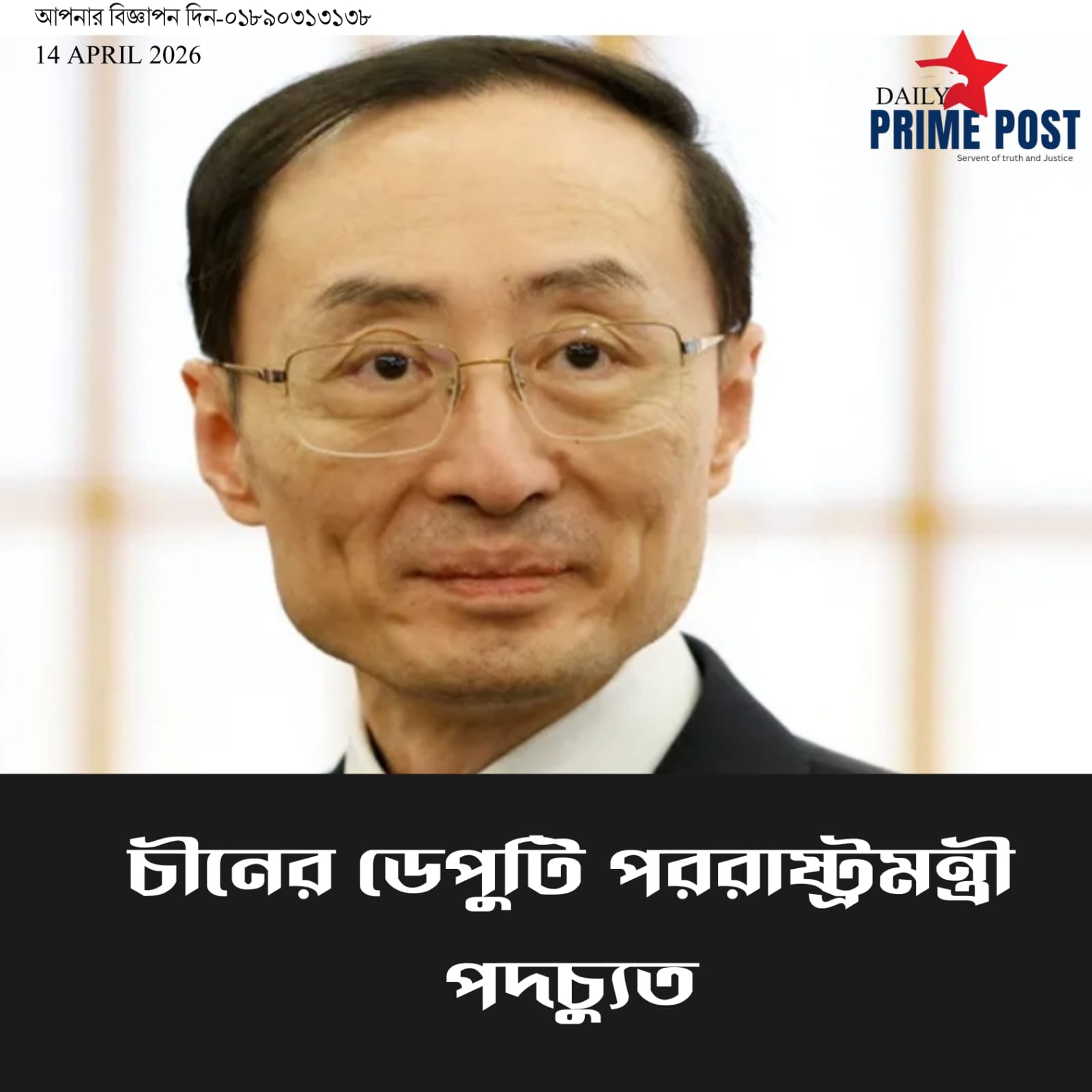 চীনের ডেপুটি পররাষ্ট্রমন্ত্রী পদচ্যুত। – China’s deputy foreign minister dismissed.