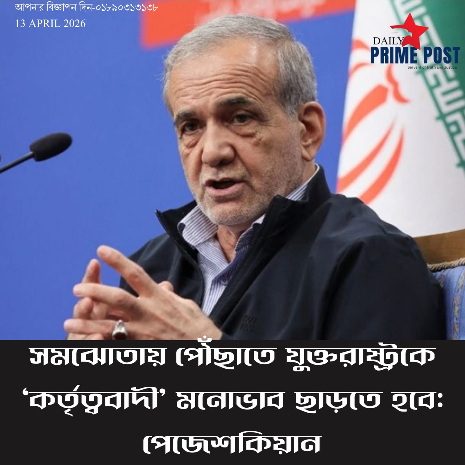 সমঝোতায় পৌঁছাতে যুক্তরাষ্ট্রকে ‘কর্তৃত্ববাদী’ মনোভাব ছাড়তে হবে: পেজেশকিয়ান। – US must abandon ‘authoritarian’ stance to reach agreement: Pjeshkian.
