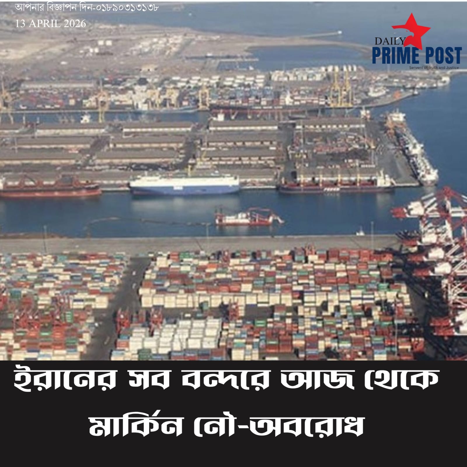 ইরানের সব বন্দরে আজ থেকে মার্কিন নৌ-অবরোধ। – US naval blockade of all Iranian ports from today.