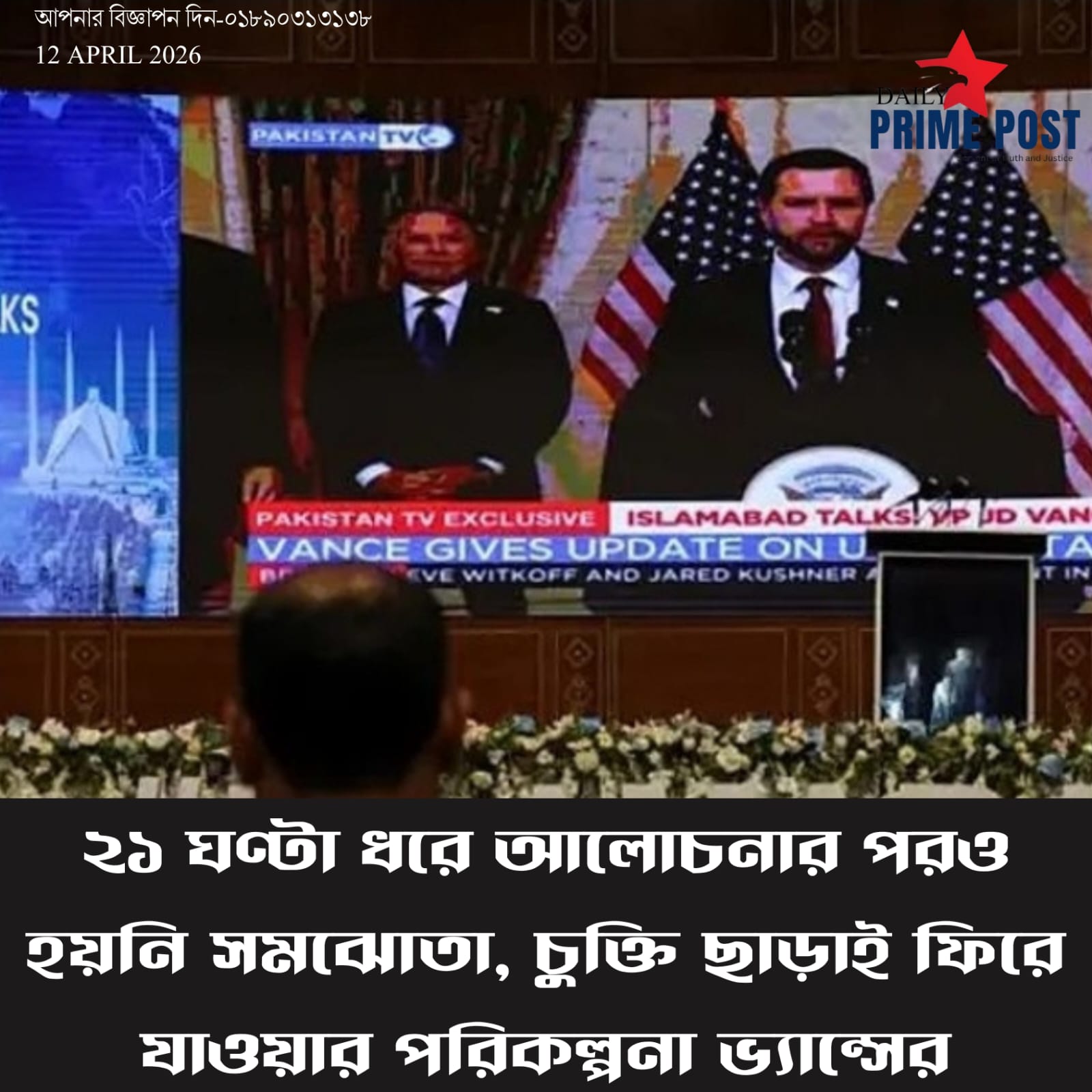 ২১ ঘণ্টা ধরে আলোচনার পরও হয়নি সমঝোতা, চুক্তি ছাড়াই ফিরে যাওয়ার পরিকল্পনা ভ্যান্সের। – No agreement reached after 21 hours of talks, Vance plans to leave without a deal.
