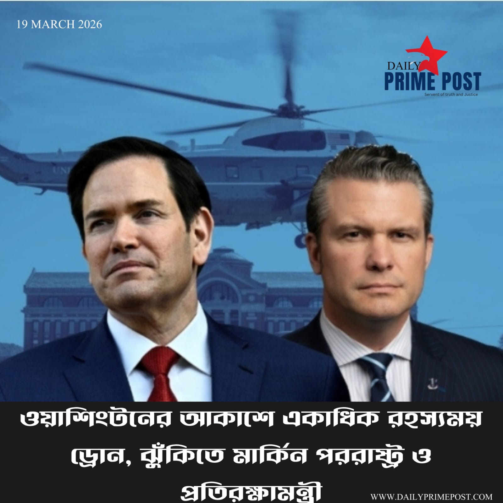 ওয়াশিংটনের আকাশে একাধিক রহস্যময় ড্রোন, ঝুঁকিতে মার্কিন পররাষ্ট্র ও প্রতিরক্ষামন্ত্রী। – Multiple mysterious drones in Washington skies, US Secretary of State and Defense at risk.