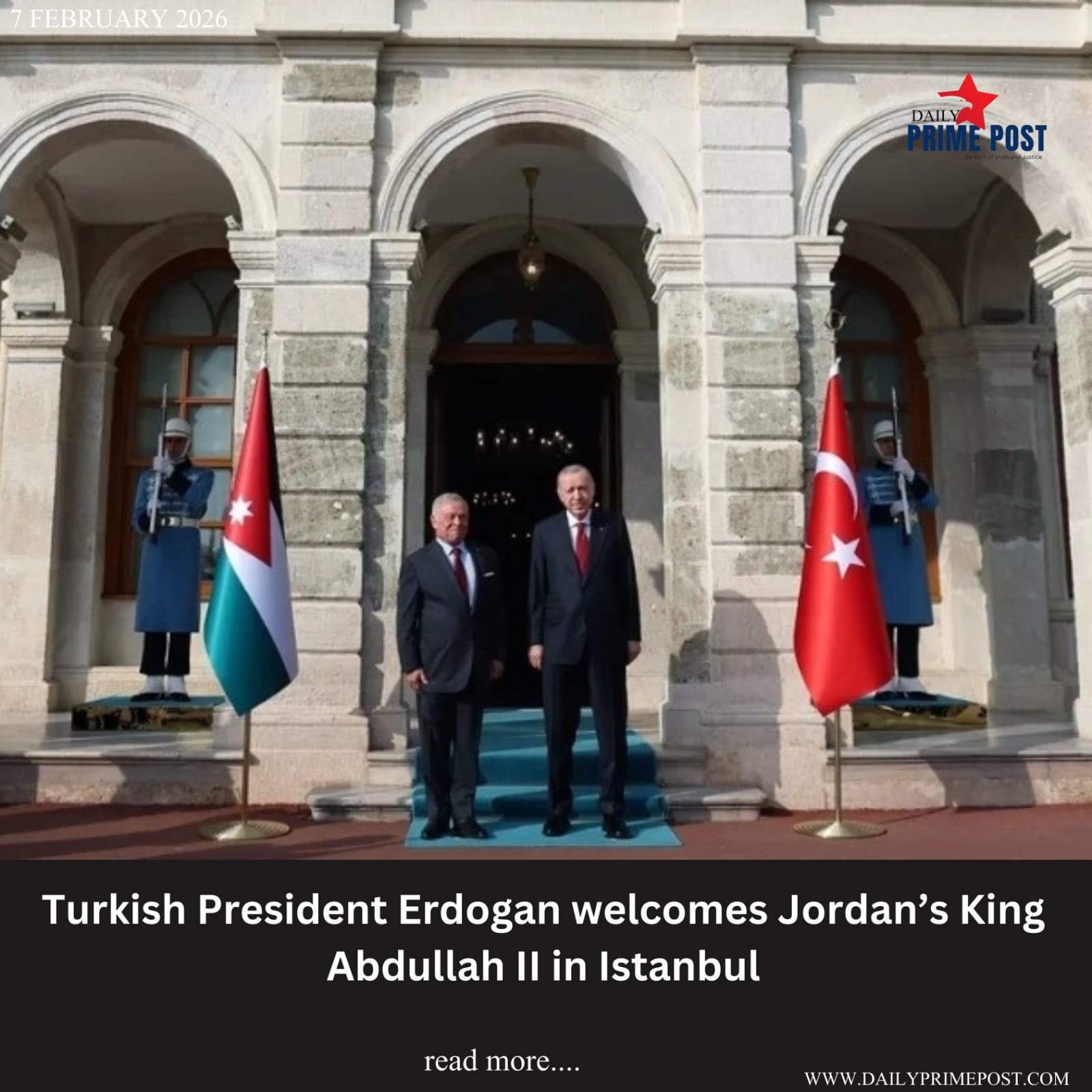 Turkish President Erdogan welcomes Jordan’s King Abdullah II in Istanbul.