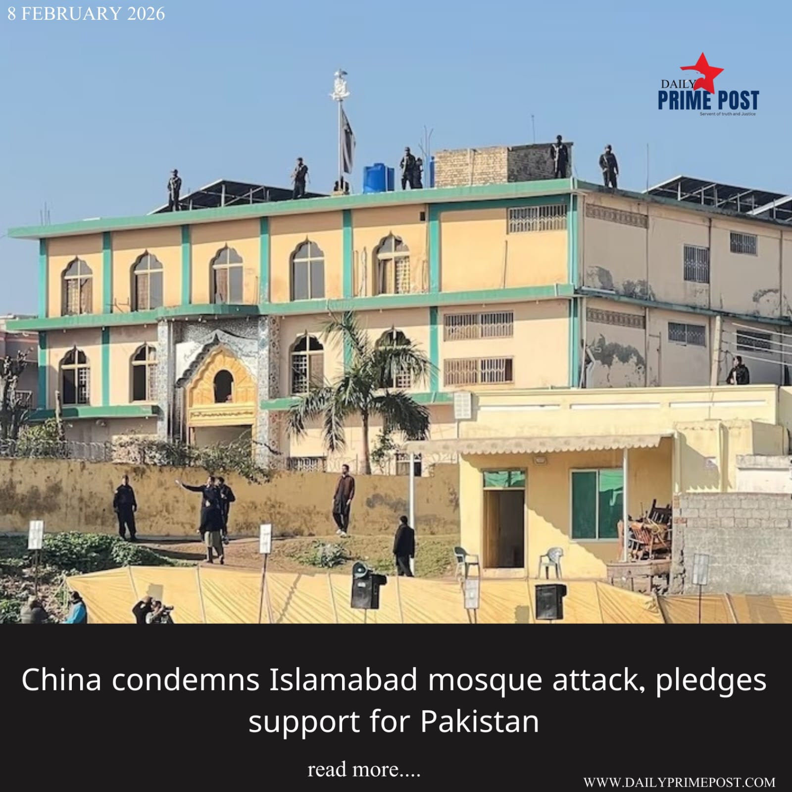 China condemns Islamabad mosque attack, pledges support for Pakistan.