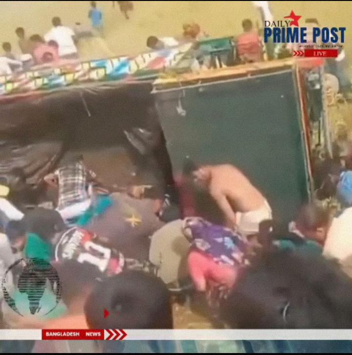 Child killed after being crushed by a fish-laden boat in Sirajganj, fish looted after the accident.