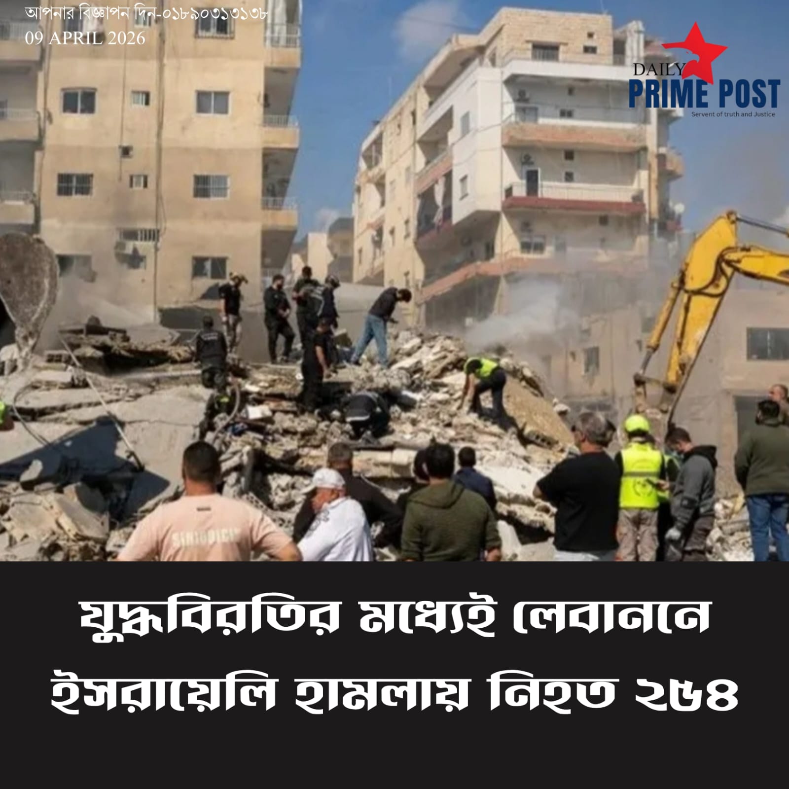 যুক্তরাষ্ট্র ও ইরানের মধ্যে যুদ্ধবিরতি ঘোষণার মাত্র কয়েক ঘণ্টার ব্যবধানে লেবাননজুড়ে ইসরায়েলি বাহিনীর ইতিহাসের অন্যতম ভয়াবহ বিমান হামলায় অন্তত ২৫৪
