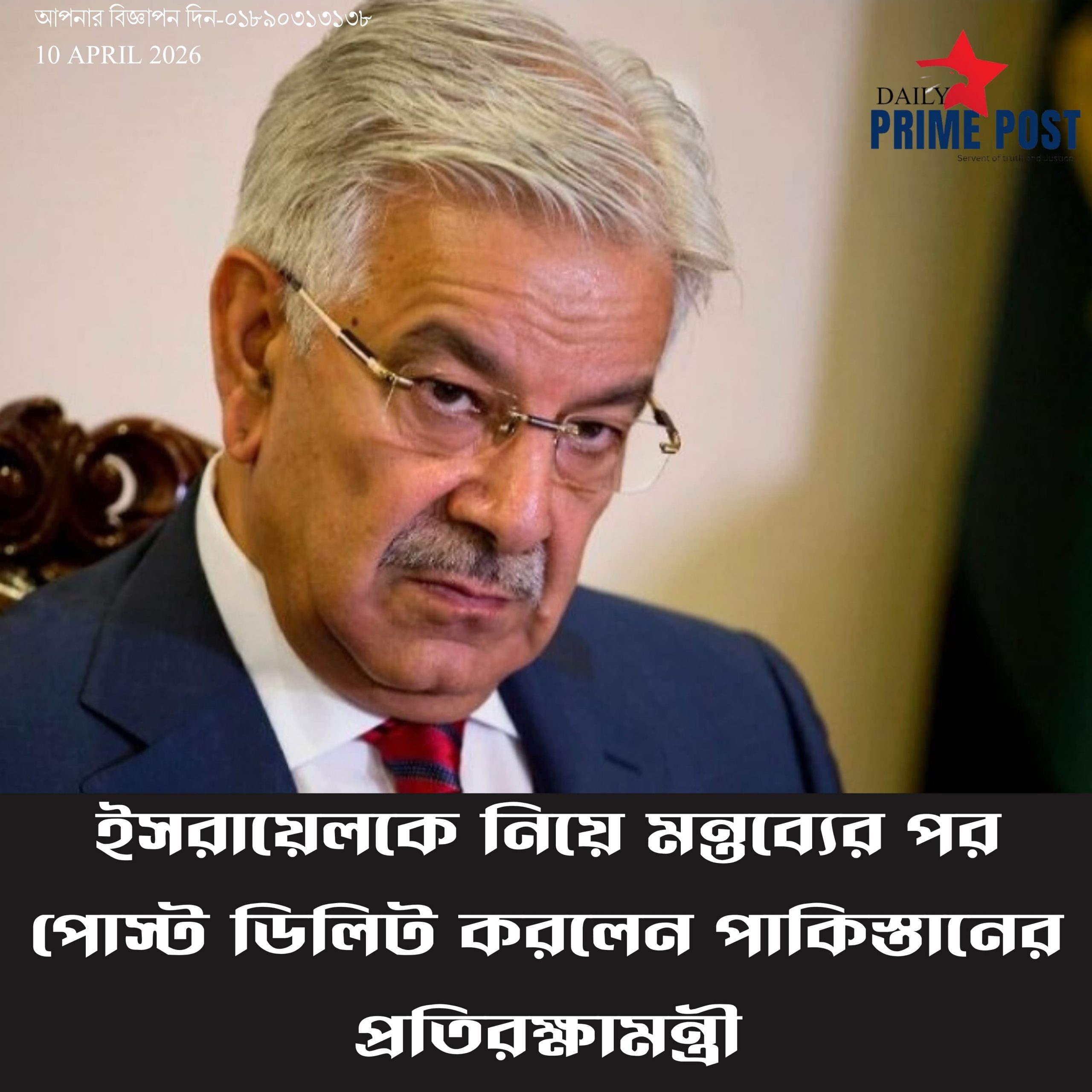 ইসরায়েলকে নিয়ে মন্তব্যের পর পোস্ট ডিলিট করলেন পাকিস্তানের প্রতিরক্ষামন্ত্রী। – Pakistan’s defense minister deletes post after comment on Israel.