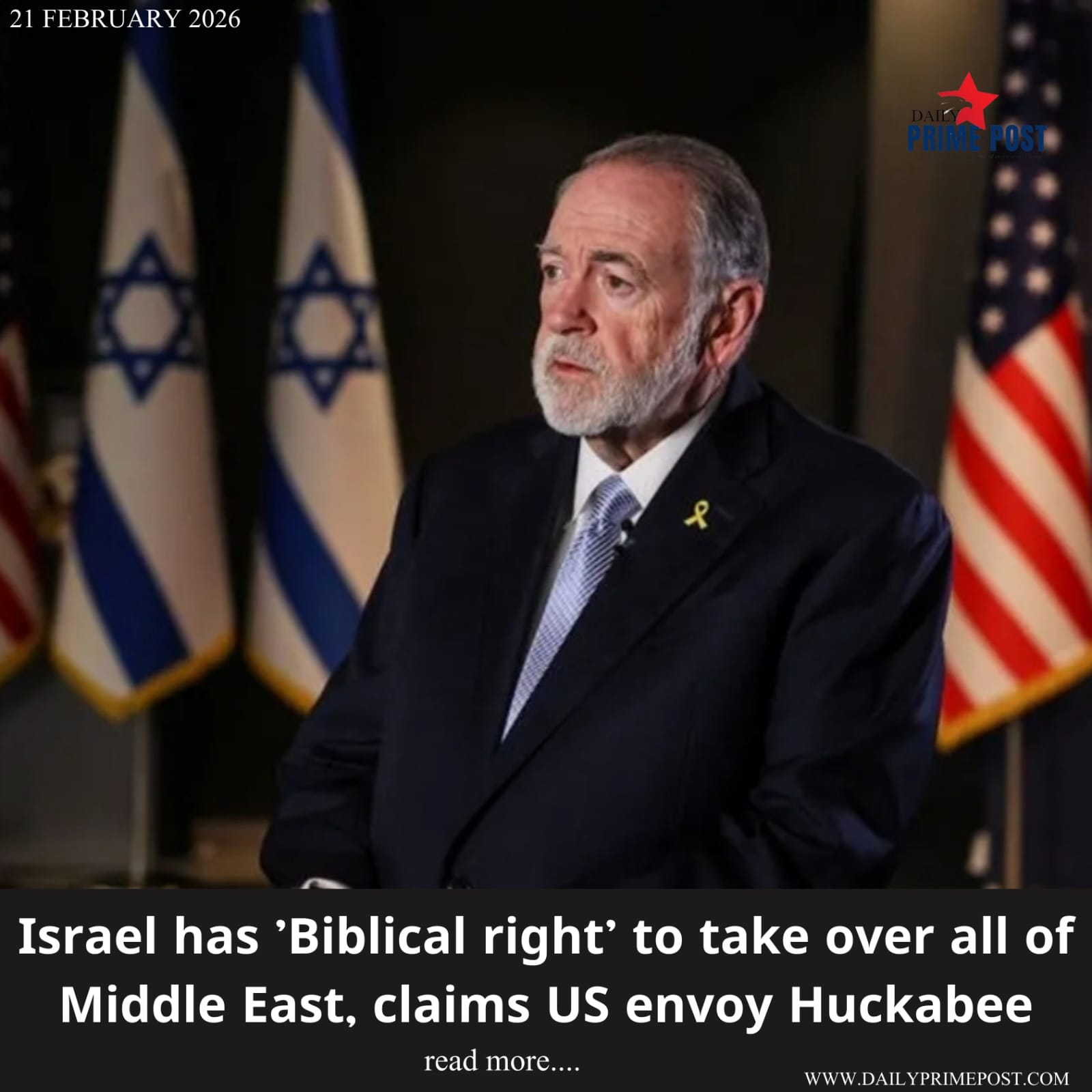 Israel has ‘Biblical right’ to take over all of Middle East, claims US envoy Huckabee.